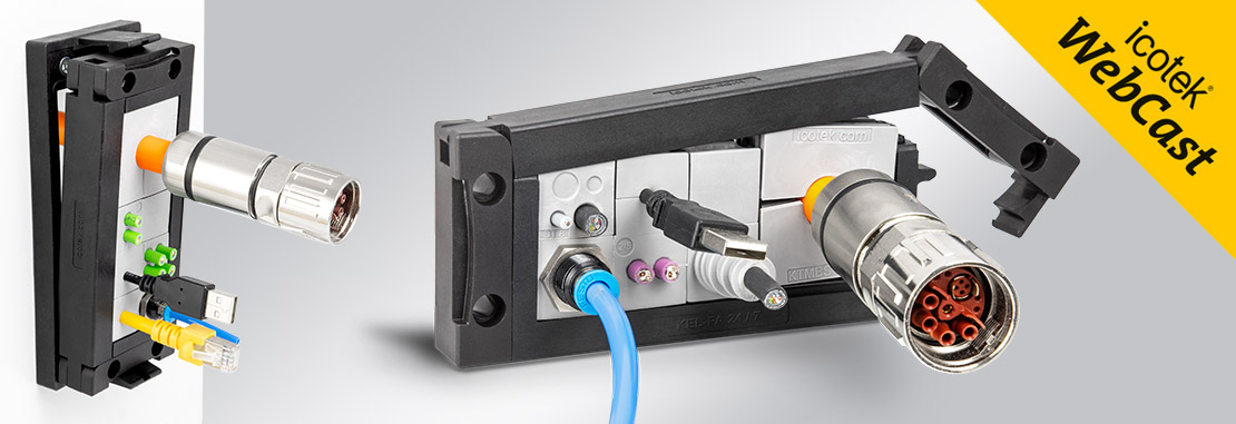 Das Adapter-System IMAS-CONNECT? von icotek ist ein durchg?ngig modular aufgebautes Tüllensystem zur Aufnahme von metrischen Steckverbindern, PushPull-Modulen, Keystone-Modulen, Schlauchverschraubungen, Druckausgleichselementen u.v.m.. Konfektionierte sowie nicht konfektionierte Leitungen bzw. Schl?uche k?nnen problemlos und platzsparend eingeführt werden. Durch den Einsatz des Adapter-Systems wird die teilbare Kabeleinführung zum Hybridsystem. Im WebCast zeigen wir Ihnen die unterschiedlichen Anwendungsm?glichkeiten unseres IMAS-CONNECT? Systems und wie Sie ganz einfach ihre Kabeleinführung zum Hybridsystem machen!