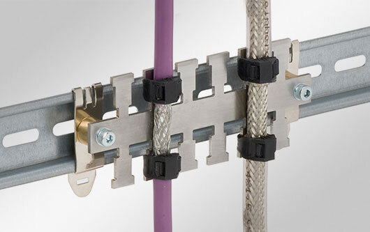 Clips de cables EMC con o sin sistema antitracción integrado, para un montaje a presión en carriles DIN TS 35.
