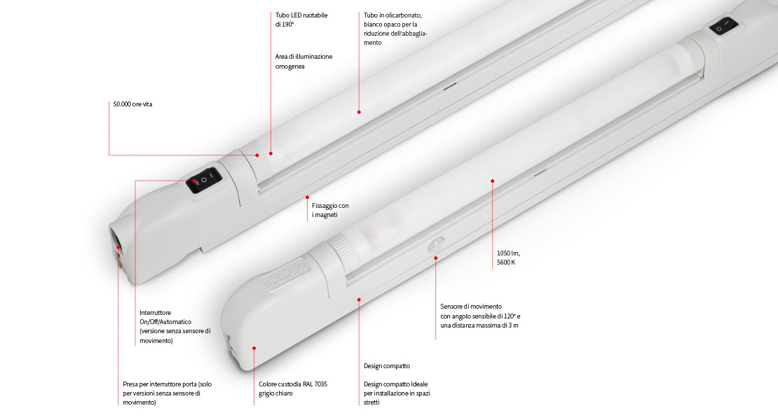 50.000 ore. Il tubo in policarbonato bianco opaco fornisce un‘a(chǎn)rea illuminata in maniera omogenea evitando l‘a(chǎn)bbagliamento.