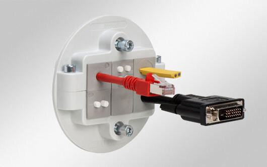 With the distribution box, centrally routed cables (with and without connectors) can be distributed 360° in all desired directions.