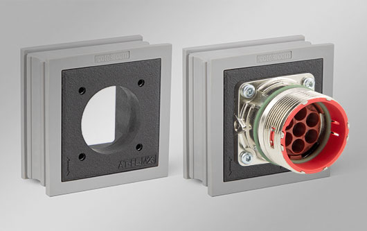 通過(guò)使用新款適配器穿芯AT-FL,所有尺寸為19.8 x 19.8 mm(M23)的方形法蘭模塊都可以直接集成到電纜入口中。