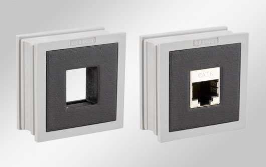 適配穿芯AT-KS也是基于大型KT穿芯設(shè)計(jì),適配穿芯QT-AT-KS也是基于大型QT穿芯設(shè)計(jì)。開(kāi)孔可實(shí)現(xiàn)基于Keystone系統(tǒng)的所有耦合器嵌入式組裝(USB, RJ45, HDMI和約70個(gè)Keystone適配器)。